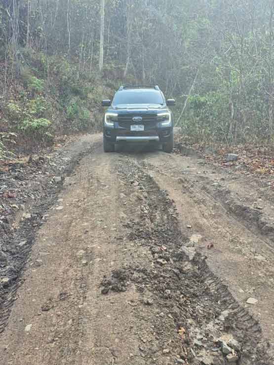 When the university finished, we took three girls from Mae Hong Son to their villages for a week to visit their families before coming to Chiang Mai to work. We took one girl straight to Chiang Mai with us.  We try to find jobs for the young people we help during the summer break. It sounds easy to take them home… but the roads to most of the villages are horrible. I am sending a couple of pictures. Unfortunately, we cannot get a picture of the worst parts of the roads. (It is too dangerous to stop and take a picture. The roads are so bumpy that the pictures do not come out if we take them while we are moving.) Imagine a one-lane, deeply rutted dirt road covered in huge rocks and a sheer cliff to the right and a drop-off to the left. Then imagine part of the road washed off the side of the mountain, and the gap bridged by small trees that were cut down and laid across the gap. Honestly, it was very scary. In the picture where I am standing, looking down on a truck, that truck is stuck in the mud. We were trying to figure out how we could get them unstuck and get around them. There is also a picture labeled Google Maps.  You will see that there is absolutely nothing showing… That is how far off the beaten track we were when taking them home.