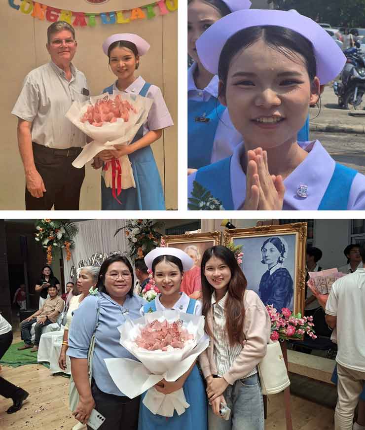 One of our young ladies, Rinrada, just finished her second year of university. She is going to be a nurse. In the nursing program, finishing the second year comes with a ceremony in which they get their nurse’s hat. We had decided to go and encourage her. We planned to take her sister, Waan, with us from Chiang Mai and go to the ceremony. Then make a large loop through the mountains to pick up three young ladies to bring to Chiang Mai to work during the summer break. Even with the gas shortage, we decided to try… not knowing if we would be able to make it back to Chiang Mai. Every time we saw a line of cars at a gas station, we stopped and got as much diesel as they would let us have. In two days, we spent around four hours in line to fill up the truck.